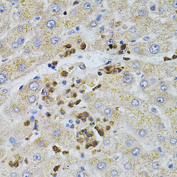 Immunohistochemistry of paraffin-embedded human liver damage using BEST1 antibody. |