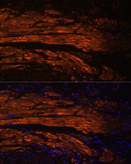 Immunofluorescence analysis of Human colon carcinoma using MYL9 antibody. |