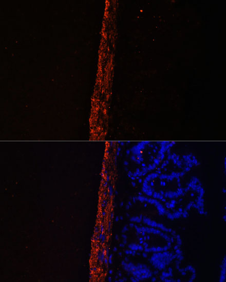 Immunofluorescence analysis of Rat intestine using MYL9 antibody.