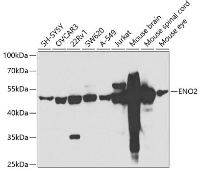 Western blot analysis of extracts of various cell lines, using ENO2 antibody.