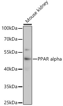 Western blot analysis of extracts of Mouse kidney, using PPAR alpha antibody. |