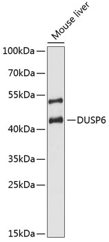 Western blot analysis of extracts of mouse liver, using DUSP6 antibody. |
