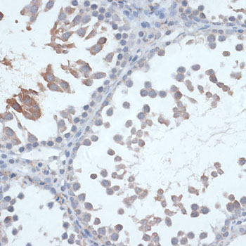 Immunohistochemistry of paraffin-embedded rat testis using FSHR antibody.