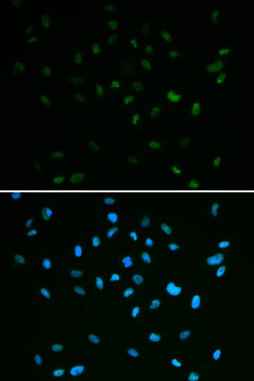 Immunofluorescence analysis of A549 cells using MSH6 antibody.