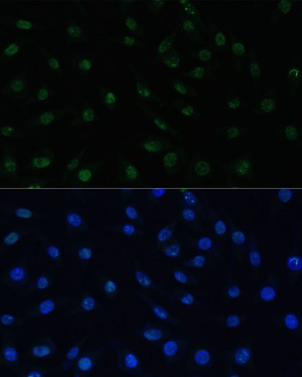 Immunofluorescence analysis of L929 cells using PELP1 Polyclonal Antibody.