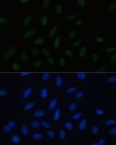 Immunofluorescence analysis of U-2 OS cells using PELP1 Polyclonal Antibody. |