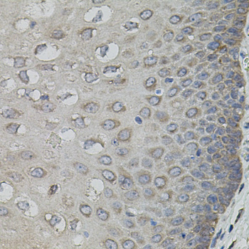Immunohistochemistry of paraffin-embedded human esophagus using MAP3K5 antibody. |