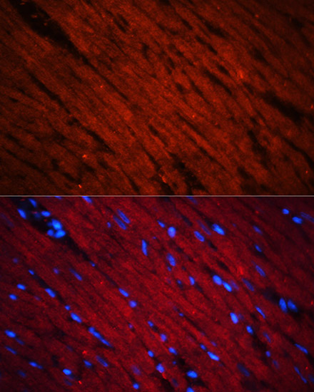 Immunofluorescence analysis of rat heart using SOS1 antibody. |