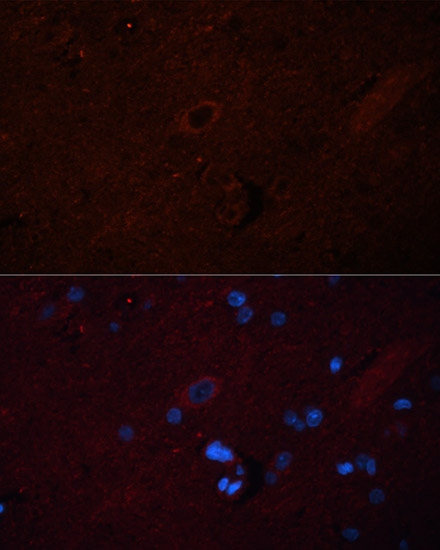 Immunofluorescence analysis of rat brain using SOS1 antibody.