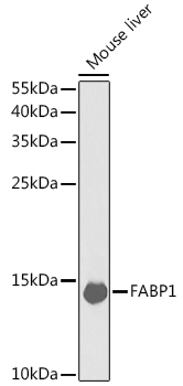Western blot analysis of extracts of mouse liver, using FABP1 antibody.