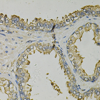 Immunohistochemistry of paraffin-embedded human prostate using FABP1 Antibody. |