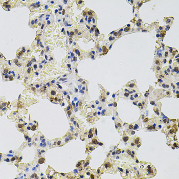 Immunohistochemistry of paraffin-embedded rat lung using GTF2H2 antibody.