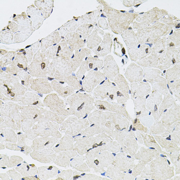 Immunohistochemistry of paraffin-embedded mouse heart using GTF2H2 antibody. |