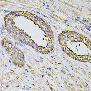 Immunohistochemistry of paraffin-embedded human prostate using S100A12 antibody. |