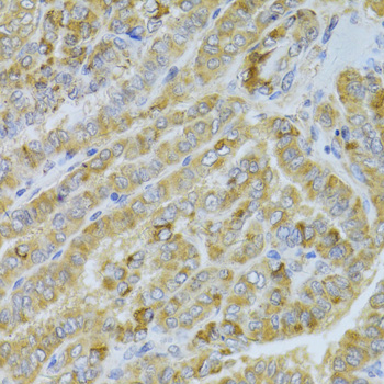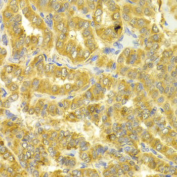 Immunohistochemistry of paraffin-embedded human thyroid cancer using DLD Antibody.