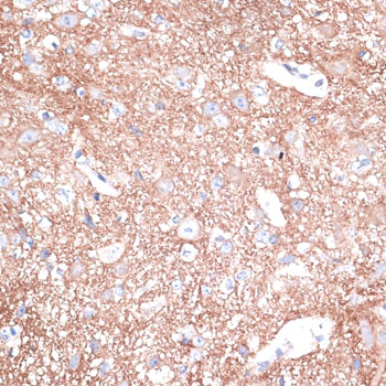 Immunohistochemistry of paraffin-embedded rat brain using STXBP1 antibody.