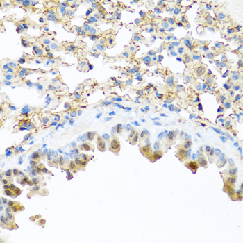 Immunohistochemistry of paraffin-embedded mouse lung using PI3 antibody. |