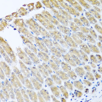Immunohistochemistry of paraffin-embedded mouse stomach using GFER antibody.
