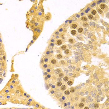 Immunohistochemistry of paraffin-embedded rat testis using RFC4 Antibody.