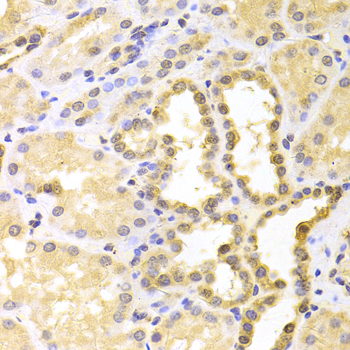 Immunohistochemistry of paraffin-embedded human kidney using S100A11 antibody. |