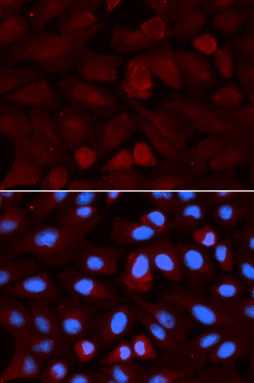 Immunofluorescence analysis of U2OS cells using ALDH3A1 antibody. |