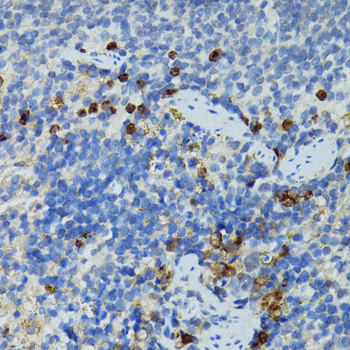 Immunohistochemistry of paraffin-embedded mouse spleen using STAT3 antibody.