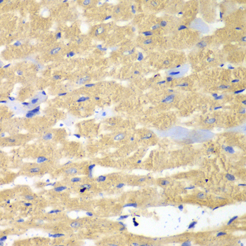 Immunohistochemistry of paraffin-embedded mouse heart using HAX1 antibody.