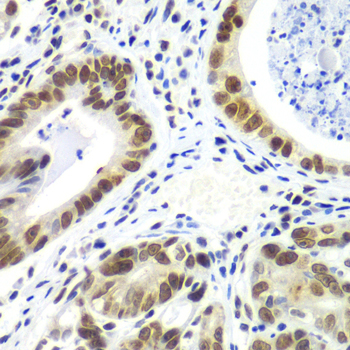 Immunohistochemistry of paraffin-embedded human gastric cancer using RNF2 antibody. |