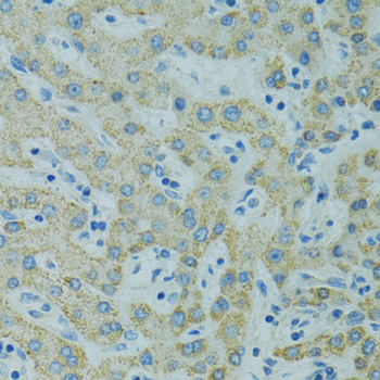 Immunohistochemistry of paraffin-embedded human liver using STX1A antibody.