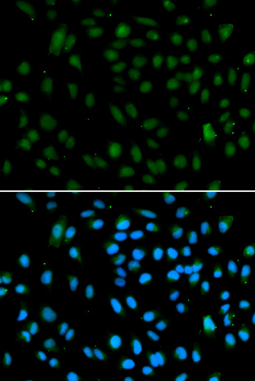 Immunofluorescence analysis of A549 cells using WHSC1L1 antibody. |