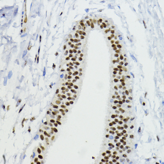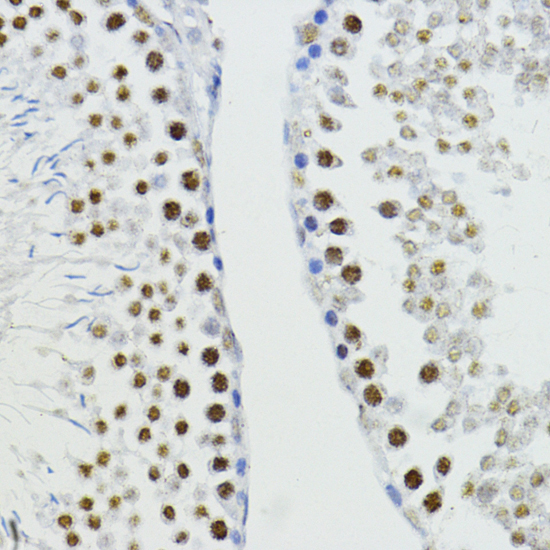 Immunohistochemistry of paraffin-embedded rat testis using ZEB1 antibody. |