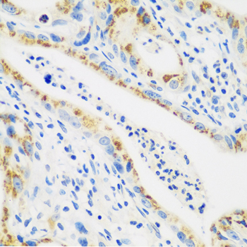 Immunohistochemistry of paraffin-embedded human stomach cancer using CTSG antibody. |