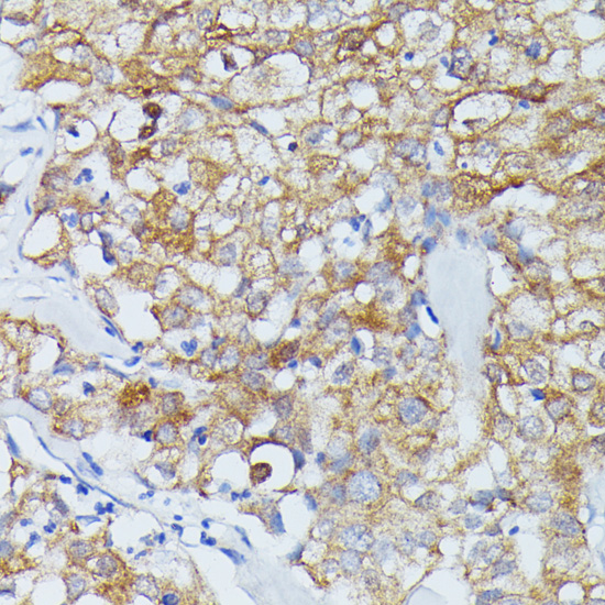 Immunohistochemistry of paraffin-embedded human mammary cancer using ECE1 antibody. |