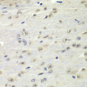 Immunohistochemistry of paraffin-embedded rat brain using FMR1 Antibody.