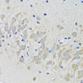 Immunohistochemistry of paraffin-embedded rat brain using HTR2B antibody.