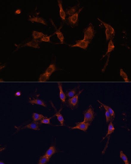 Immunofluorescence analysis of C6 cells using IQGAP1 Polyclonal Antibody. |