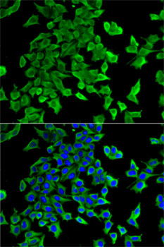 Immunofluorescence analysis of U2OS cells using ITGA2B antibody. |