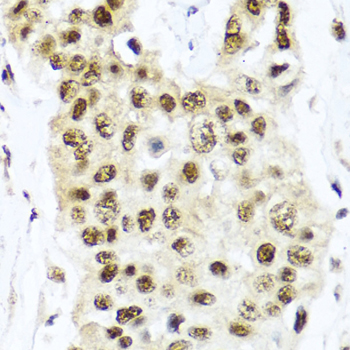 Immunohistochemistry of paraffin-embedded human lung cancer using TET2 antibody. |