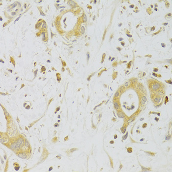 Immunohistochemistry of paraffin-embedded human gastric cancer using CASP2 Antibody.