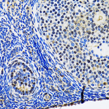 Immunohistochemistry of paraffin-embedded rat ovary using p53 antibody.