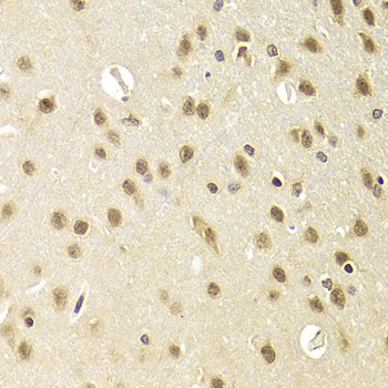 Immunohistochemistry of paraffin-embedded rat brain using HEXIM1 Antibody. |