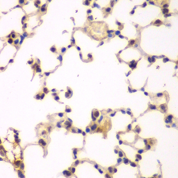 Immunohistochemistry of paraffin-embedded rat lung using NFKBIB antibody.
