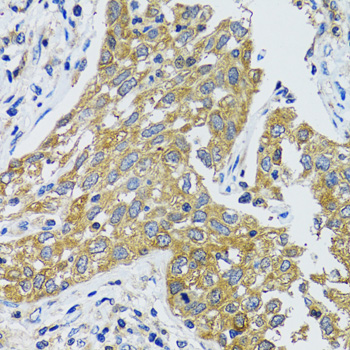Immunohistochemistry of paraffin-embedded human lung cancer using GOT1 antibody. |