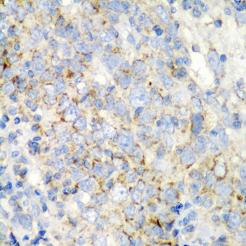 Immunohistochemistry of paraffin-embedded human esophageal cancer using PRKCQ antibody. |