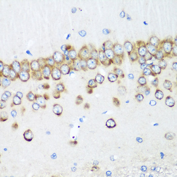 Immunohistochemistry of paraffin-embedded rat brain using MTDH antibody.