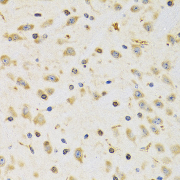 Immunohistochemistry of paraffin-embedded rat brain using RPS12 antibody.