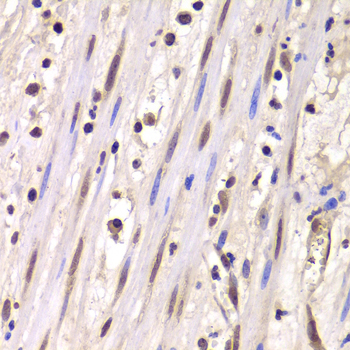 Immunohistochemistry of paraffin-embedded human mammary cancer using LSM4 antibody.