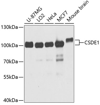 Western blot analysis of extracts of various cell lines, using CSDE1 antibody. |