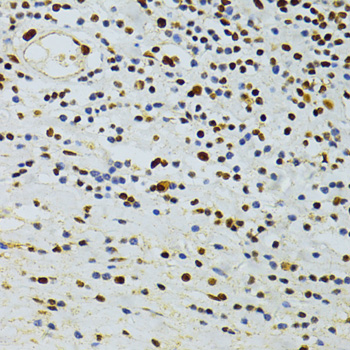 Immunohistochemistry of paraffin-embedded human vermiform appendix using ALYREF antibody. |