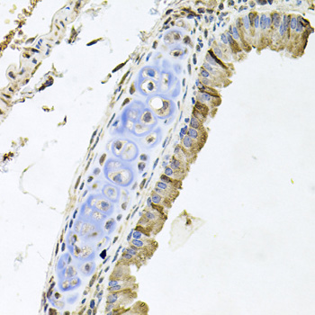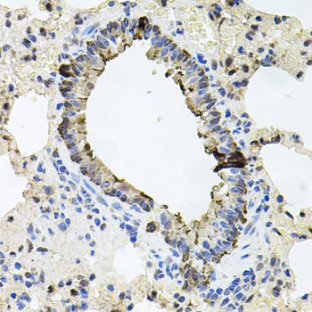 Immunohistochemistry of paraffin-embedded mouse lung using ERBB4 antibody.